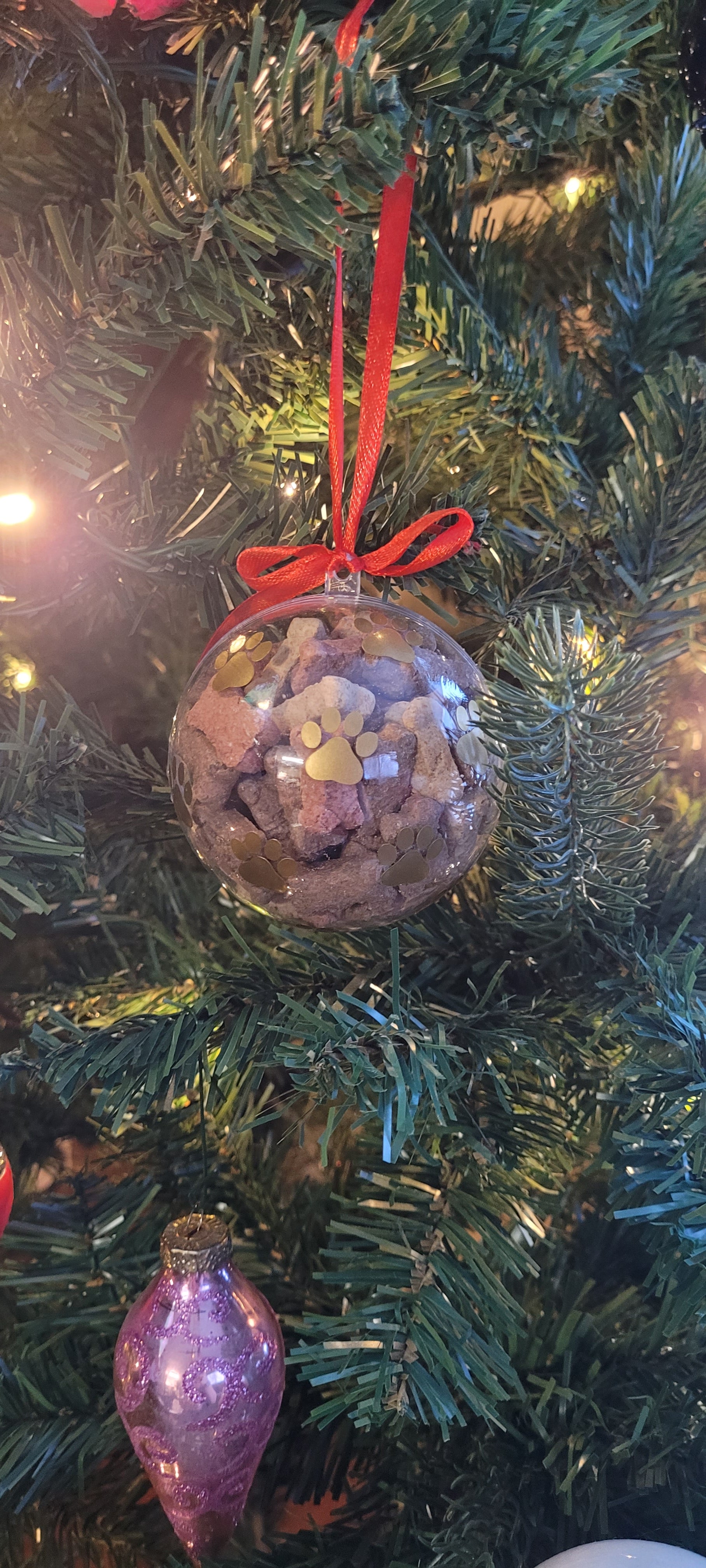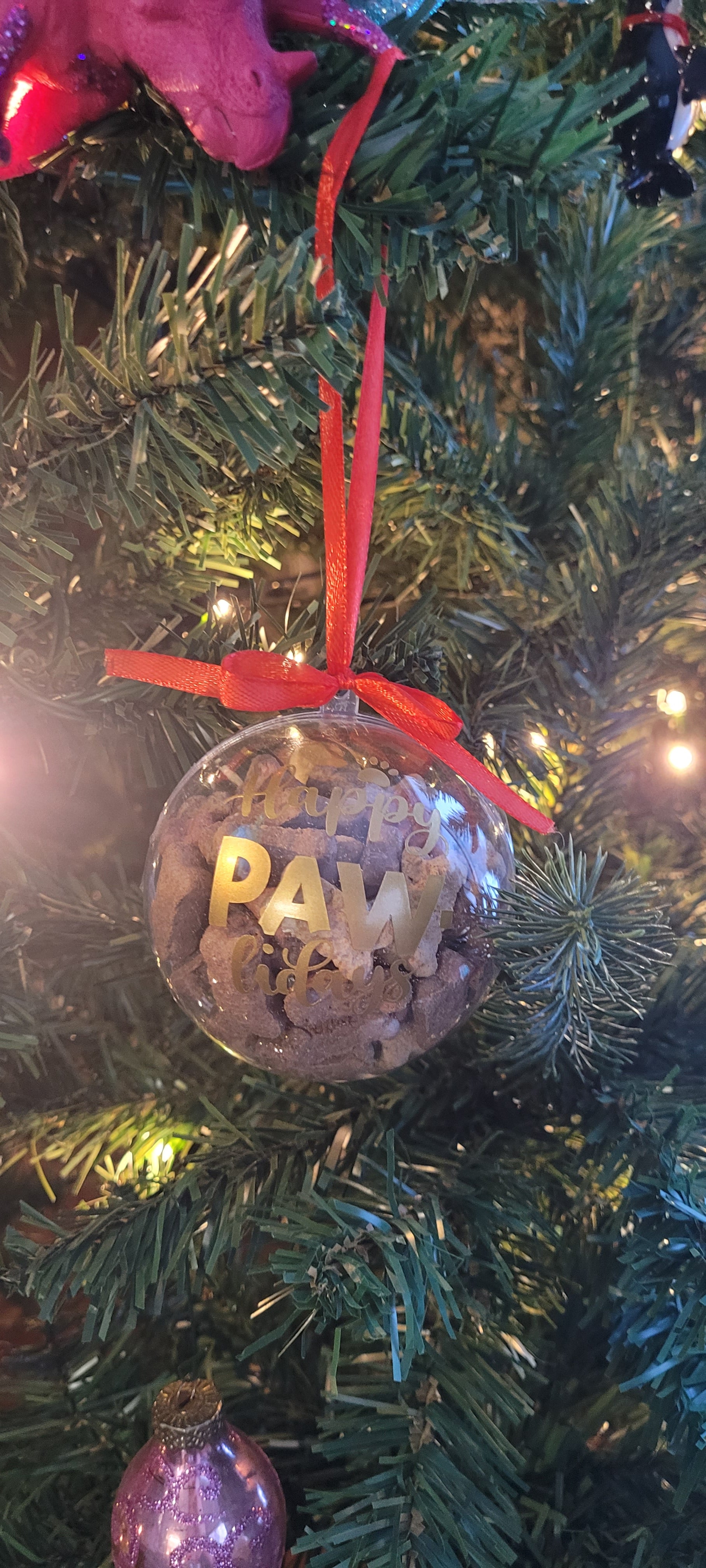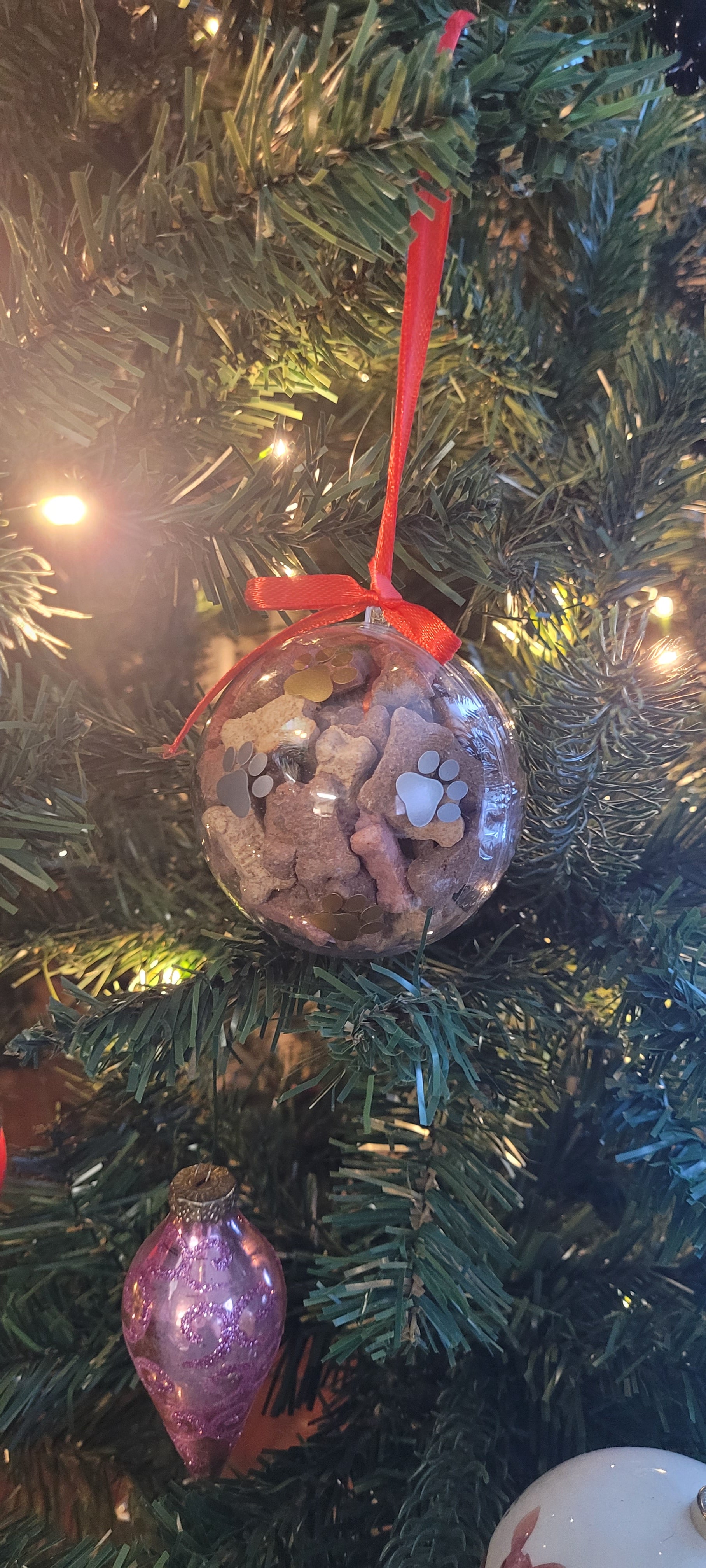 These ornaments are filled with some yummy treats for your fur babies all while adding a nice touch to your tree.